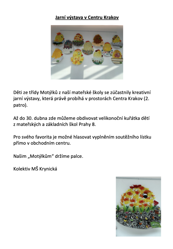 naše třída Motýlků se zúčastnila kreativní výstavy v Centru Krakov.