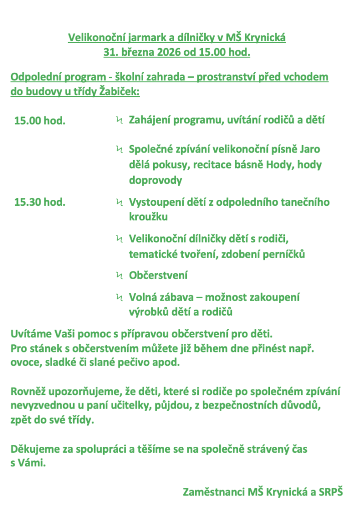 zde naleznete program Velikonočního jarmarku a dílniček.